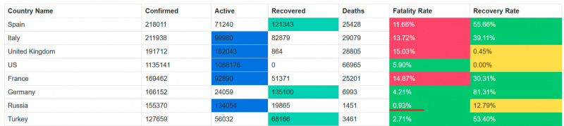 Fatality Rate целиком зависит от честности правительства и от того, как они определяют умер человек от короны или нет.