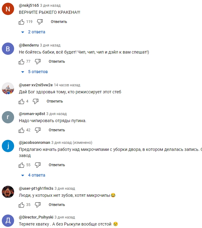 На ютюбе ни одного коммента в поддержку бабок. Вот случайный фрагмент.