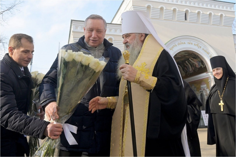 По окончании сего благостного мероприятия человек-Беглов подарил Варсонофию букет белых роз - в знак любви и бесконечной дружбы.