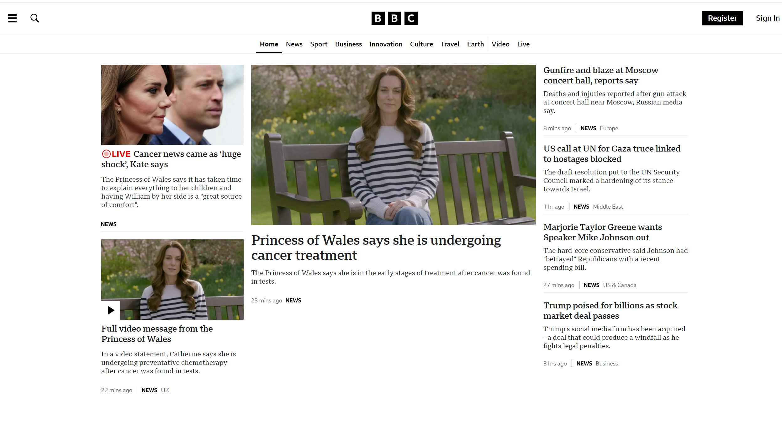 Прошелся по сайтам мировых новостных агенств. Есть новости про бомбежки энергостанций в Украине, резолюцию в совбезе ООН, еще пару проходных новостей, ну и очень горячая новость... Рак ранней стадии у Кейт Мидлтон. На теракт в Москве как будто всем наплевать.