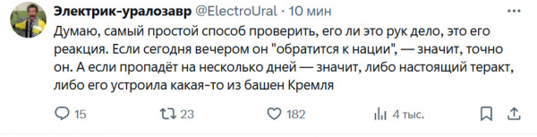 Upd: А вот, кстати, вроде бы здравая мысль. Если будет срочное "обращение к нации" - тогда оно понятно. Если не будет - ну, тогда посмотрим.