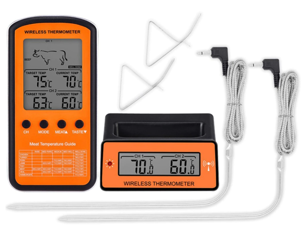 Я пользуюсь вот таким: https://www.amazon.com/ThermoPro-Wireless-Digital-Cooking-Thermometer/dp/B01GE77QT0
