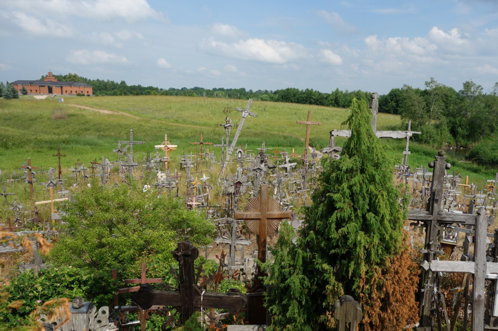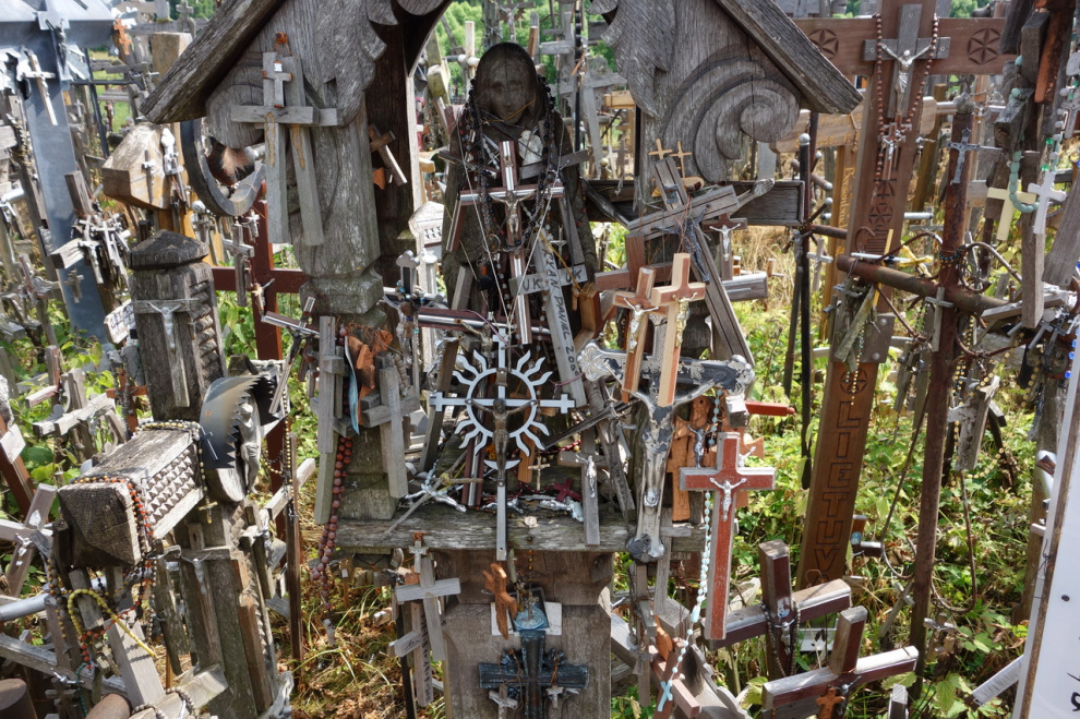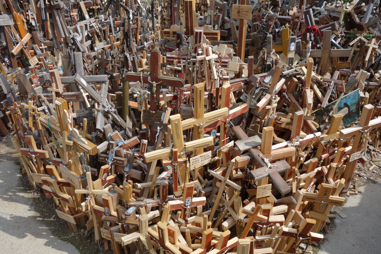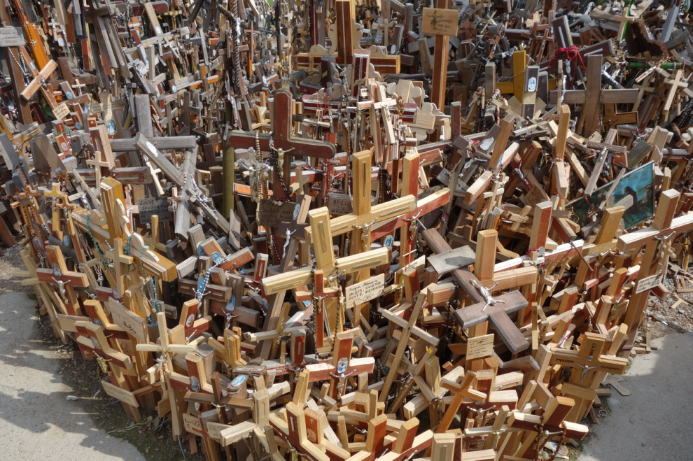 Любопытное местечко под Шяуляем. Когда-то давно некий рыцарь чем-то заболел, но к врачам обращаться не стал, а поставил освященный крест на небольшом возвышении. И тут же выздоровел, потому что к врачам обращаться не стал. Люди узнали об этом чуде и тоже начали ставить кресты на этом холмике - кто чтобы выздороветь, а кто просто чтобы не болеть. В результате врачебная практика в этих краях пришла в полный упадок, а холмик нынче представляет собой довольно забавное зрелище.