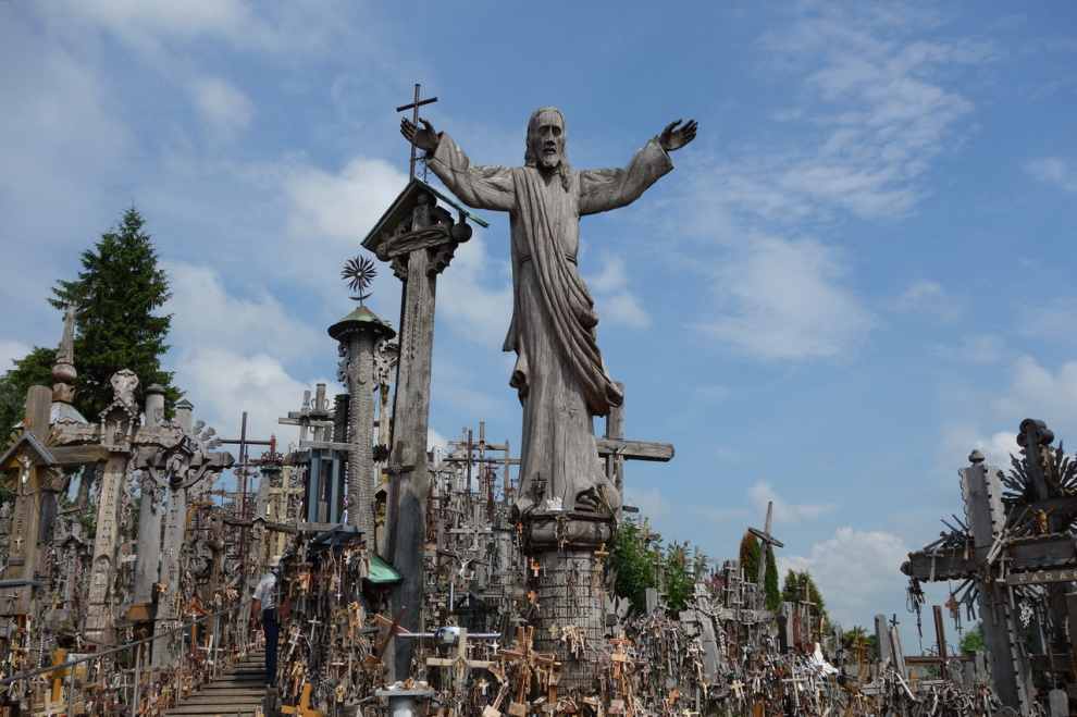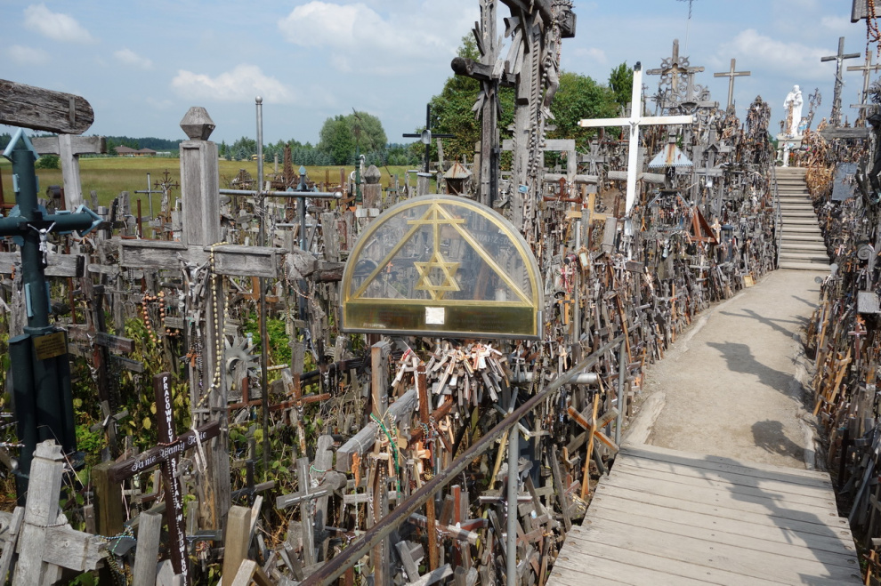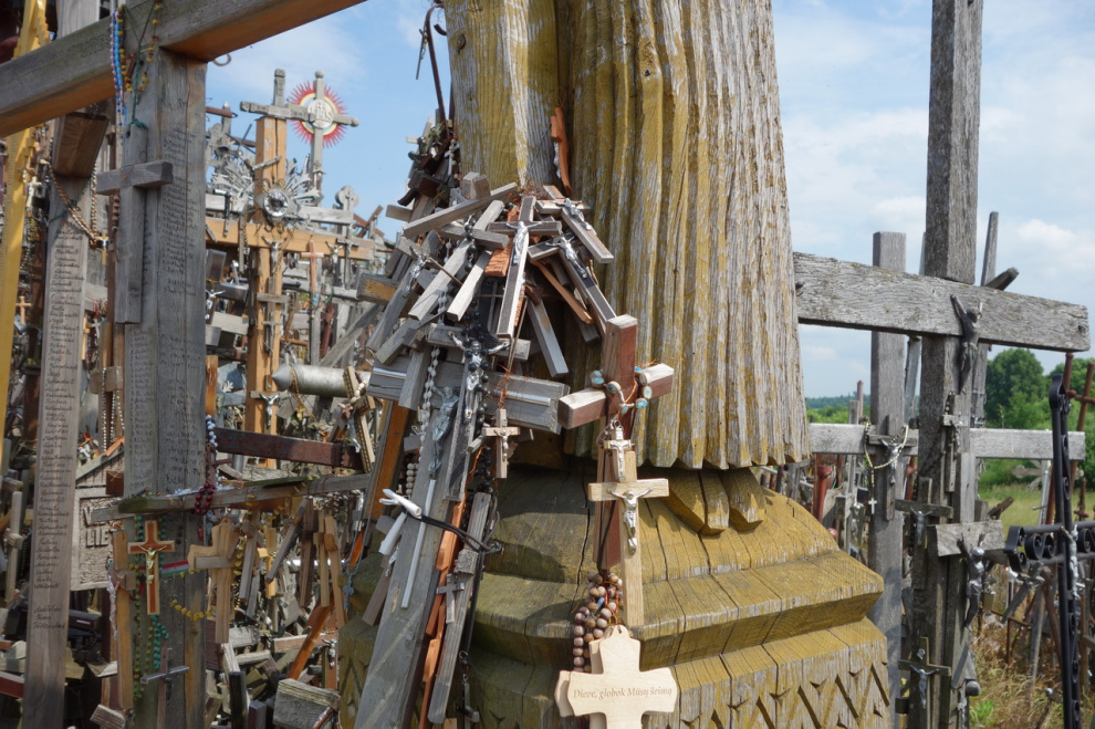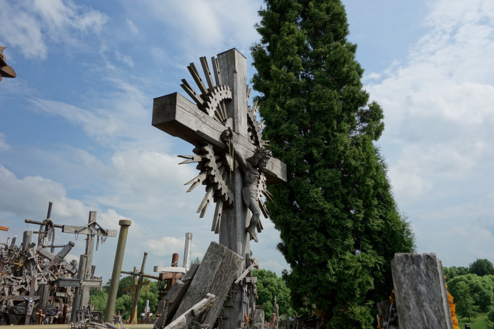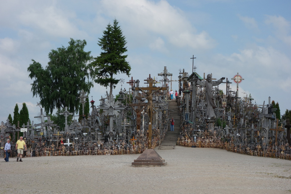 Любопытное местечко под Шяуляем. Когда-то давно некий рыцарь чем-то заболел, но к врачам обращаться не стал, а поставил освященный крест на небольшом возвышении. И тут же выздоровел, потому что к врачам обращаться не стал. Люди узнали об этом чуде и тоже начали ставить кресты на этом холмике - кто чтобы выздороветь, а кто просто чтобы не болеть. В результате врачебная практика в этих краях пришла в полный упадок, а холмик нынче представляет собой довольно забавное зрелище.