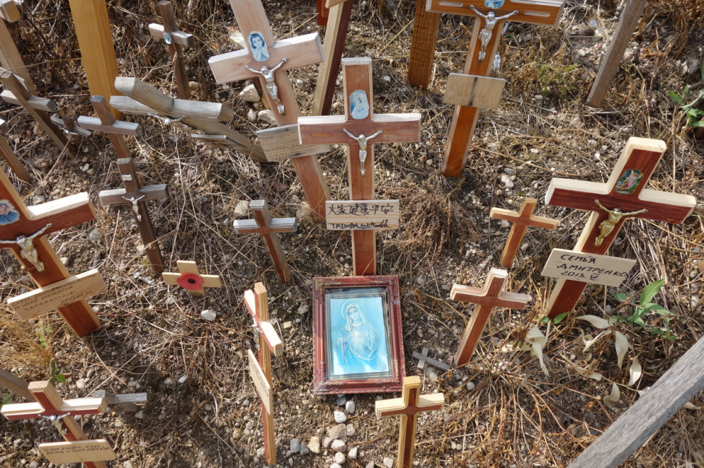 Ну и рядом с парковкой выяснилось, откуда берутся вот эти явно новые крестики. Просто такой бизнес, ничего личного. Видимо, скопом освященные. Купили, написали, поставили - и все, можно к врачам не обращаться.