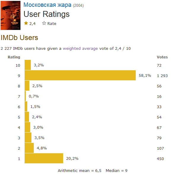 Поскольку такая реакция просто-напросто противоречит всей логике обычного поведения пользователей – вот "спал" юзер много времени, но именно на этом спорном фильме его почему-то вдруг "пробило на голосануть".