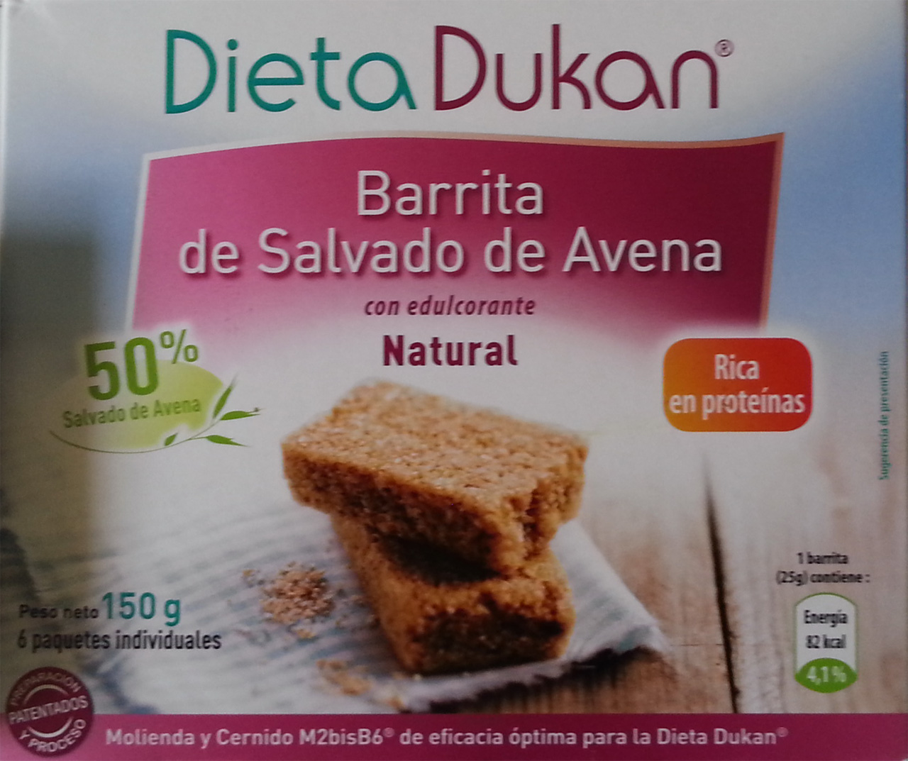 Здесь, в Испании, продаются три продукта, причем прямо указано, что это для дюкановской диеты. Во-первых, просто сами отруби, из которых можно готовить блинчики. Во-вторых, десертные галеты из отрубей - кстати, очень вкусные. В-третьих, что-то вроде хлебцев из отрубей - они тоже сладковатые, как и галеты. Сильно не хватает несладких таких галет, но вот их я тут не нашел.