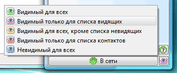 Но тут есть одни грабли, на которые многие наступают. Дело в том, что после возвращения из статусов "Отошел" и "Недоступен" приватный статус почему-то меняется на "Видимый для всех, кроме списка невидящих" - и вы таким образом становитесь видны тем, кому не нужно.