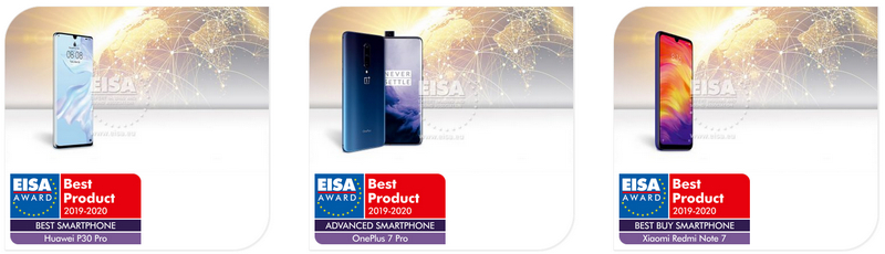 OnePlus 7 Pro назван самым продвинутым смартфоном года, так как обладает мощным процессором, 12 гигабайтами оперативной памяти и безрамочным дисплеем, занимающим 88 процентов фронтальной панели. Honor 20 Pro получил награду в номинации «Лайфстайл-смартфон» за аккумулятор на четыре тысячи миллиампер-часов и неплохую камеру. Лучшим доступным смартфоном назван Xiaomi Redmi Note 7. (Отсюда.)