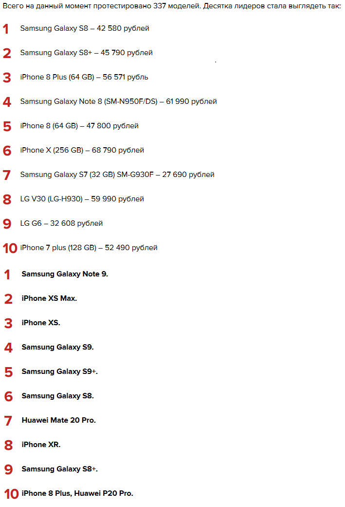 Роскачество разродилось топом десяти лучших смартфонов 2019 года (по их мнению). Табличка получилась очень своеобразная.