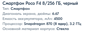 Qualcomm Snapdragon 778G, 8/256 ГБ, дисплей 6,67" AMOLED 120 Гц, основная камера 108 Мпикс, аккумулятор 5000 мАч, зарядка 67 ватт.