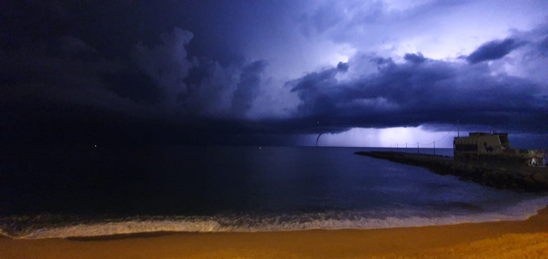 Друг тренируется на пляже в Барселоне, прислал фотку грозы над морем с торнадо, сделанную на совсем галимый сверхширик смартфона (качество соответствующее). Но составить впечатление можно.