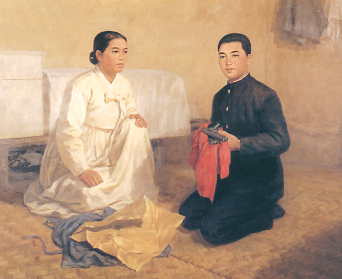 Начиная от бессмертных классических произведений, написанных самим Ким Ир Сеном. Вот вам пример:
