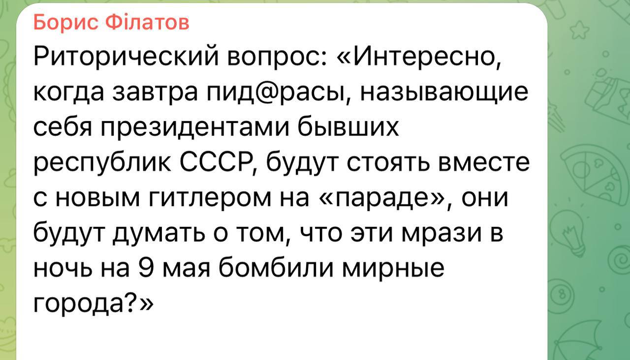 Несмиян в своём тг-канале хороший пост написал о 9 Мая t.me и я с ним полностью согласна- это камерный, семейный праздник, когда люди просто собирались семьёй, друзьями и вспоминали своих отцов, дедов, отдавали дань памяти и уважения и тем, кто остался на той войне навсегда и тем, кто вернулся с неё живым. И таким он и должен стать снова, без этого бряцанья оружием, пафосных речей, карнавальных военных костюмов и трешевого патриотического угара.