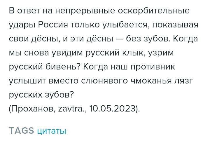 Гораздо хуже, что этим россказням верит собственное население. А верит оно потому, что и само так думает, а если даже знает, что это ложь, то все-равно радуется и твердит на контраргументы: а вы докажите (причем в наших судах докажите, ибо вашим мы не верим), или, когда припрут фактами и доказательствами - и че вы нам сделаете.