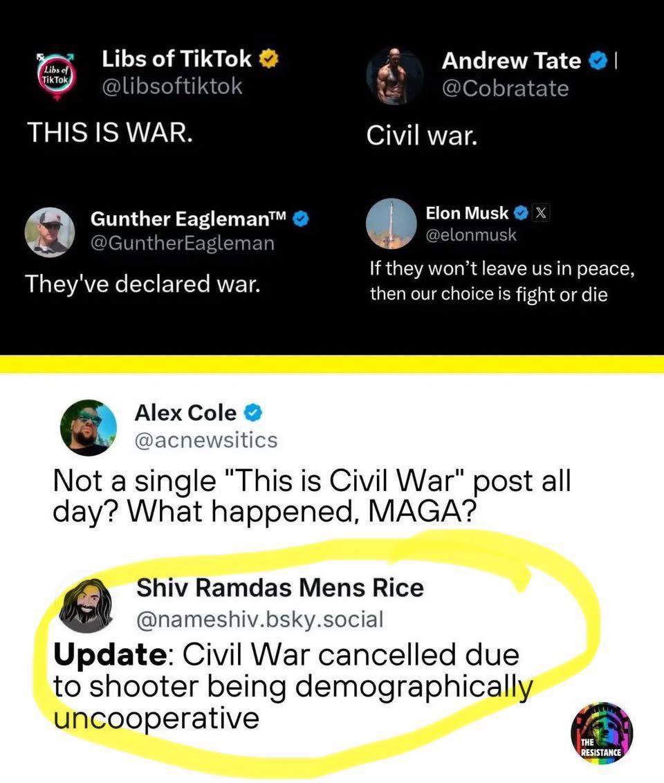 Кстати, мага-долбоклюи уже и гражданскую войну "отменили", как только узнали, что убийца-то свой правасек