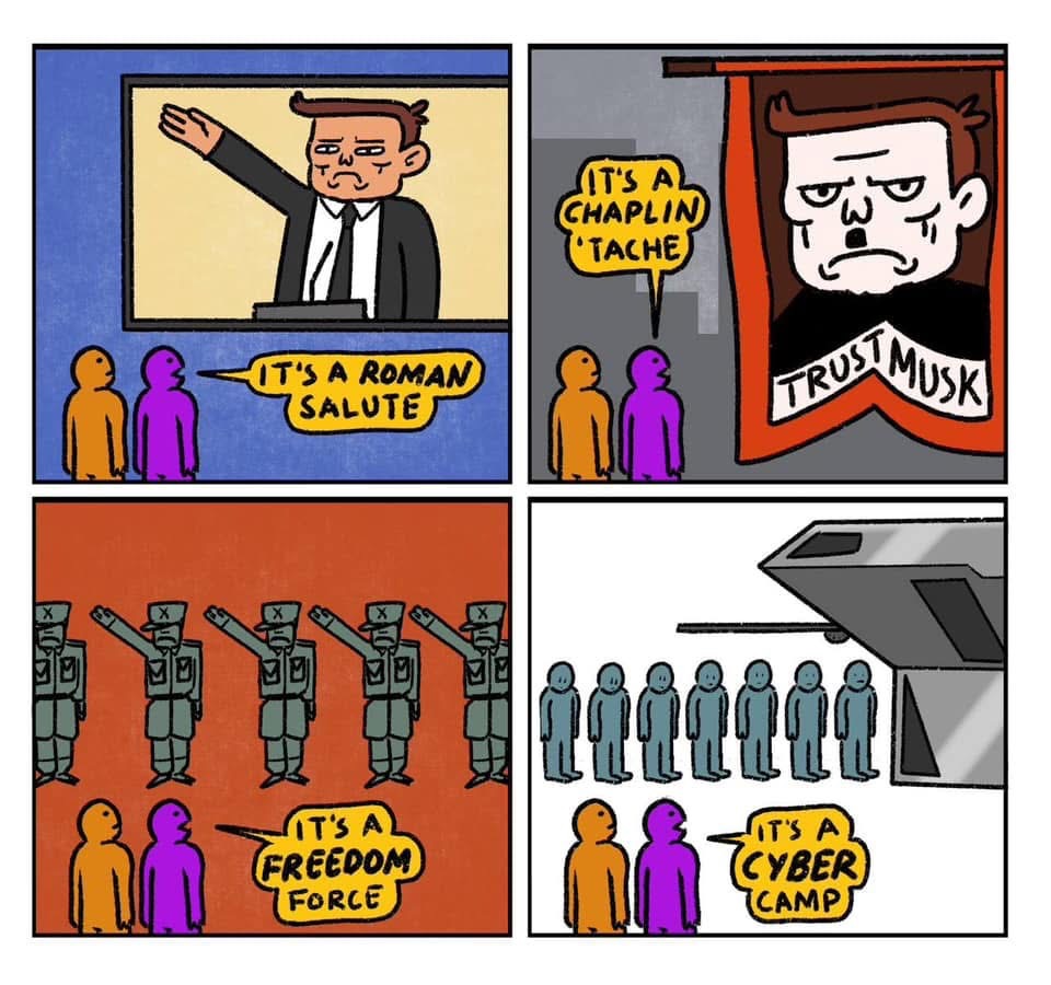 Во-вторых, возможно Маск и не хотел ничего такого сказать своей зигой, но если на это вообще не обратить внимания, то завтра уже будет полно таких которые будут зиговать от души и ссылаться на Маска.