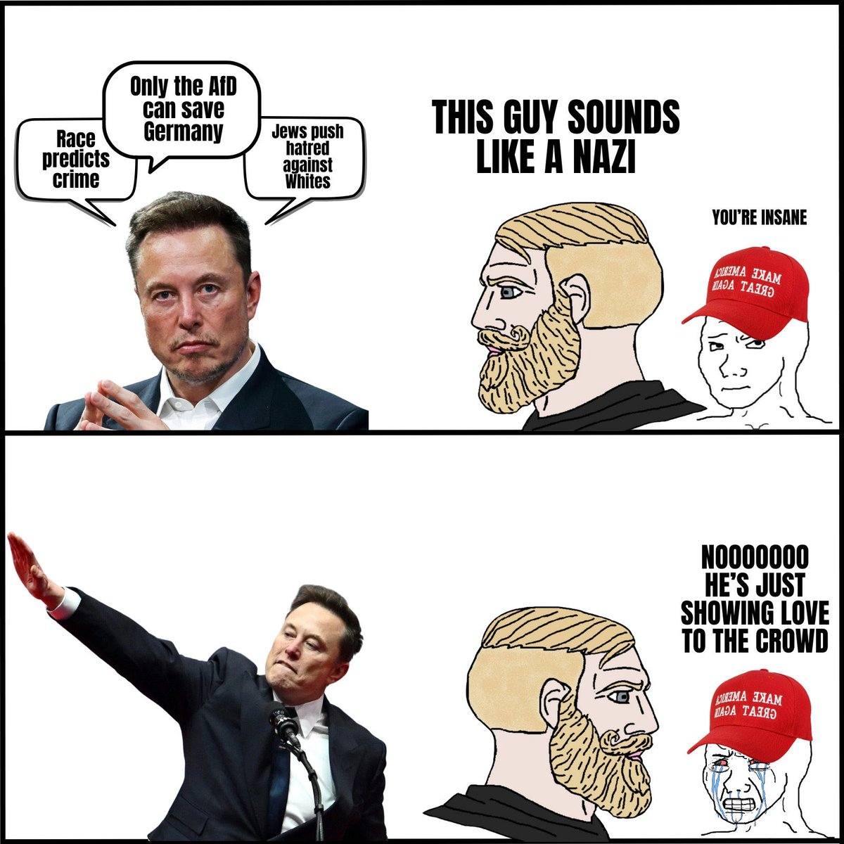Добро пожаловать в мой мир. Я 3+ года пытаюсь объяснить немцам и прочим европейцам, почему Азов - не нацисты, а патриоты. Свастики, руны, украина для украинцев - немцам непонятно почему нужно помогать и сочувствовать "нацистам". А мне непонятно, как в 21 веке можно быть такими недалекими и не думать как твои татухи, жесты, высказывания поймут в мире, особенно если ты от него зависишь (это я не про Маска, ему как раз похер). И вот так у них во всем, коммуникации 0, что для избирателя в Ковеле годится то и на трибуну ООН вынесем, ачотакова. Один зигует, вторые свастики рисуют, третий матерится в интервью как чушпан, ачотакова