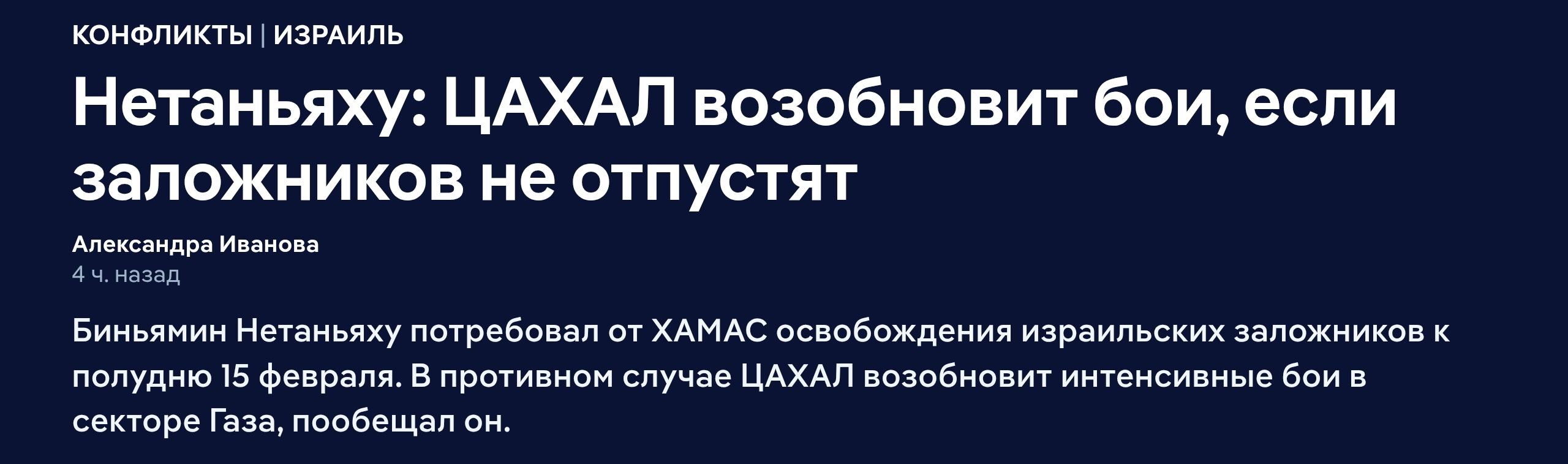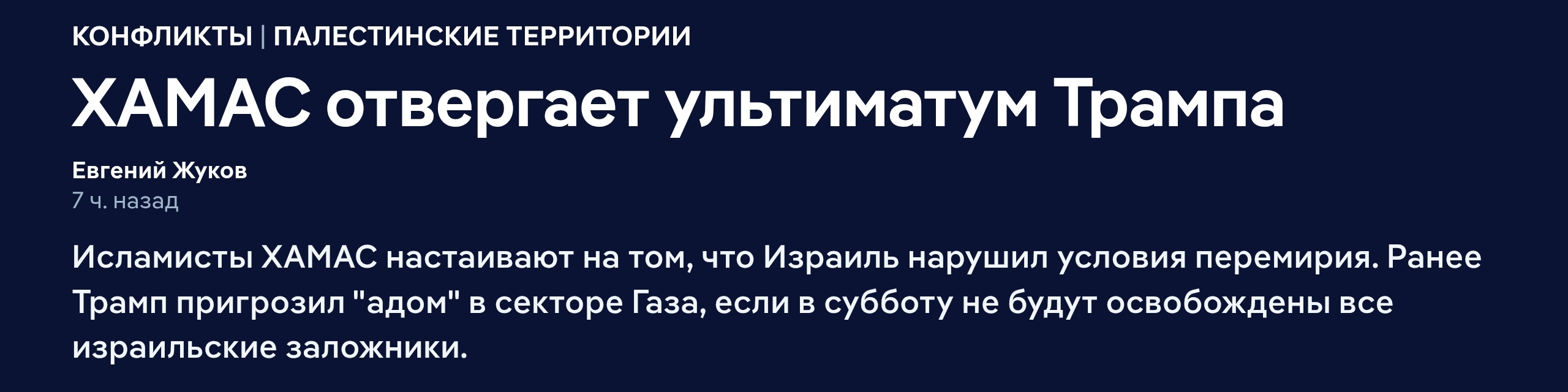 Трамп потребовал от ХАМАС освободить всех заложников к полудню 15 февраля. Как считаете, что теперь будет?