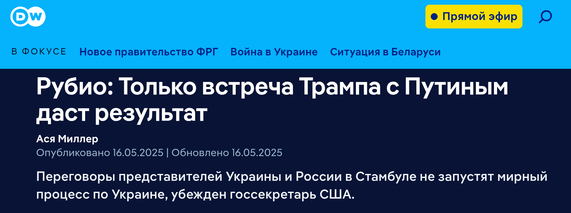 И мистер Т. в этом абсолютно прав.Без прямого участия Трампа и Рубио с Келлогом никакого перемирия и мира не будет.