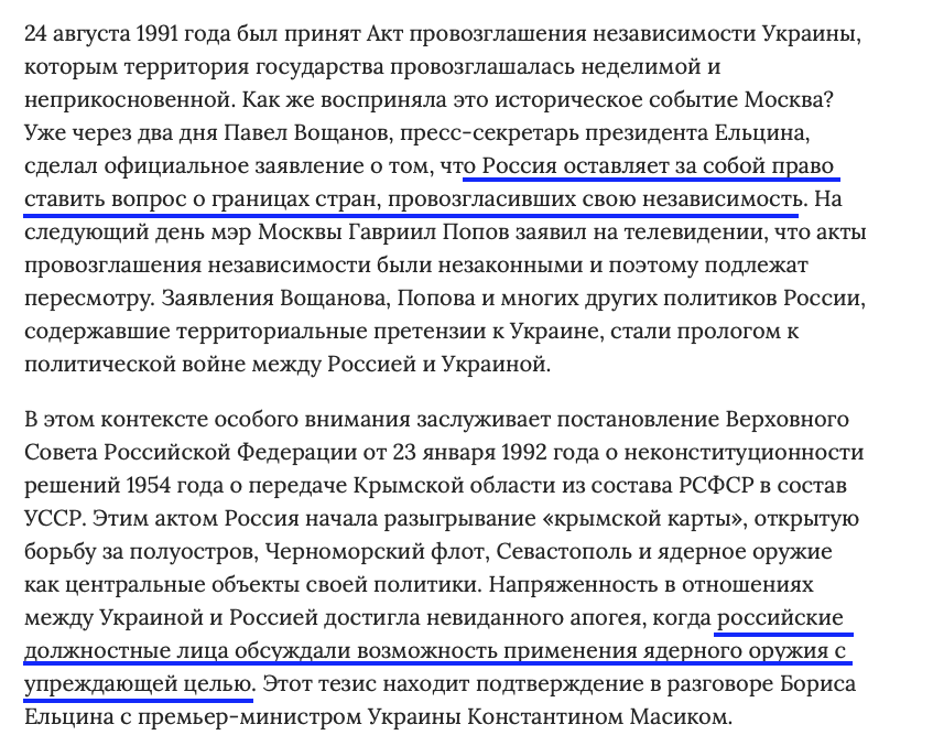 Эта история началась не в 2022, не в 2014 и даже не в 2008 году. Она началась, если не закапываться в досоветские времена, аккурат в 1991. Не стоит думать, что Ельцин и Путин - это два таких случайных "совпадения". Все, что нужно знать о представлениях россиян о законности и отношению к империи, мы узнали в 2014 во время тотального праздника аннексии полуострова. Путин и Ельцин - не случайны. Они - вполне себе отражение народного мировоззрения. При этом, оба обрабатывали постсоветские страны, в первую очередь Украину, практически непрерывно - экономическим, политическим, военным путем. Надеяться, что следующий после Путина будет не такой - нет никаких оснований.