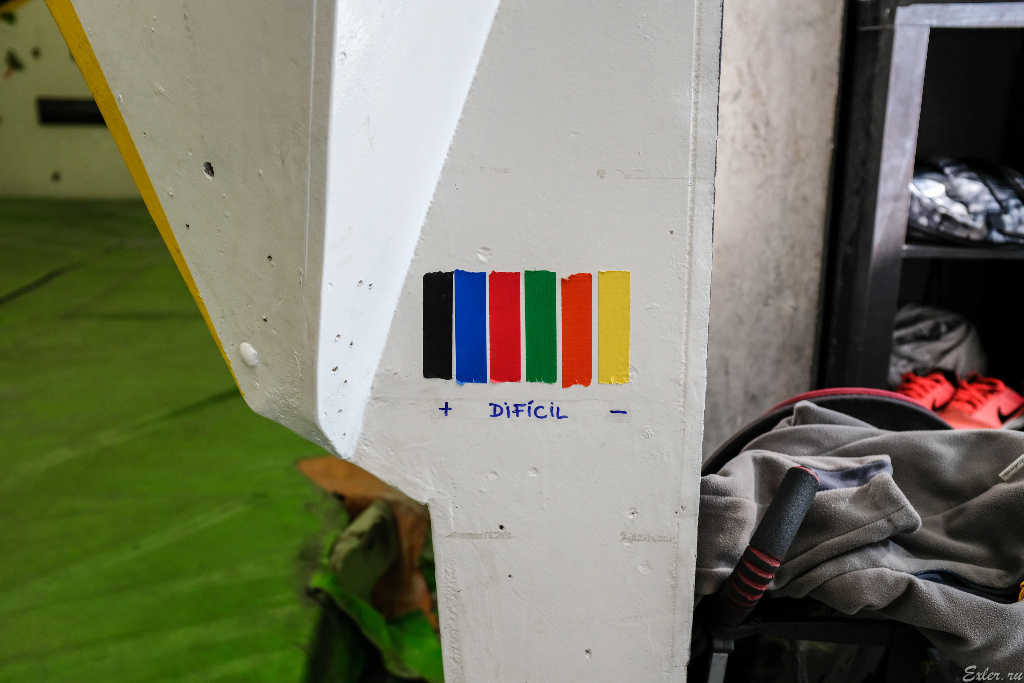 В правой части снимка зелёная трасса с жёлтыми метками на старте, достаточно лёгкая. Без нависания и по ручкам. 😄
