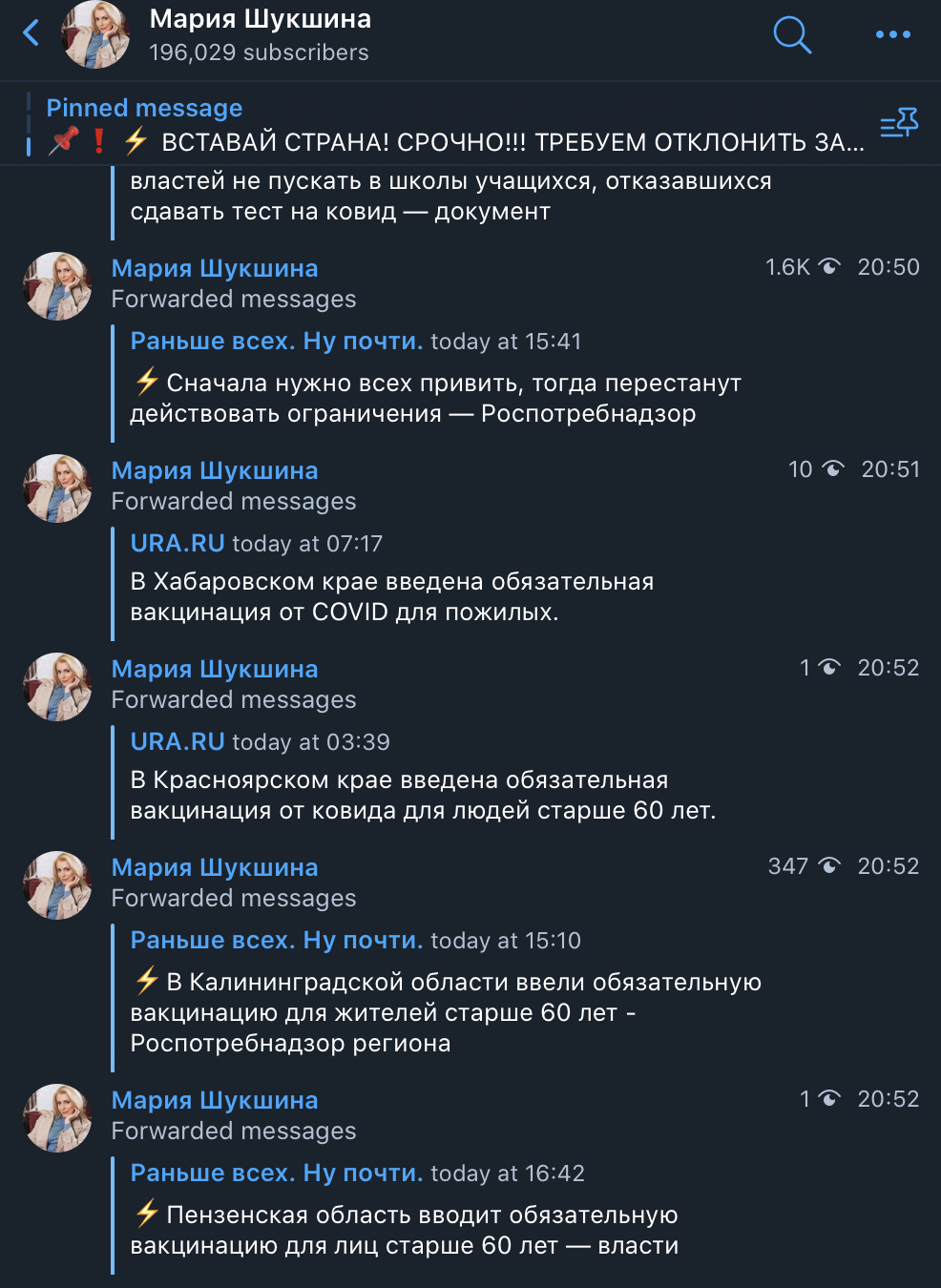 И разумеется ровно также и в исходном посте Шукшиной ни слова не говорится, что она чем-то встревожена и кого-то о чём-то предупреждает 😄