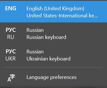 Ну и тогда я решил воспользоваться советом, который мне как раз и давали в комментариях к записи о раскладках: убрал испанскую раскладку и английскую США, а вместо этого поставил английскую США международную.