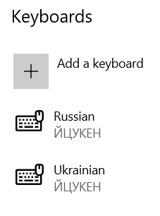на самом ноутбуке нет кириллицы (только внешняя), поэтому я еще добавляю еще и Mnemonic (Транслит) для работы без клавы. Всякие французские à, è, ù, ç тоже через правый Alt + CharCode ввожу.