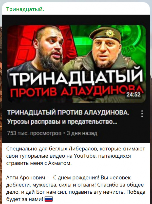 Есть такая Z-гнида "Тринадцатый", он же Егор Гузенко. Большой, знаете ли, патриот, на его ТГ подписано более 300 тысяч человек. Егор - парень горячий, иногда позволяет себе критиковать начальство, что начальством не приветствуется.