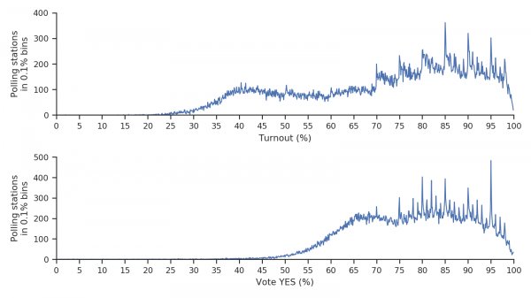 ...и что? Всё равно на вашем участке "явка 64.9% за - 77. 3%"