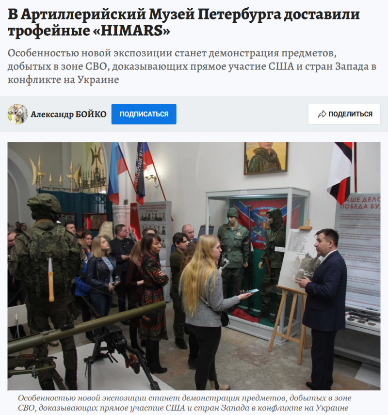 Больше нравится фраза журнализда "Демонстрация предметов, добытых в зоне СВО"...