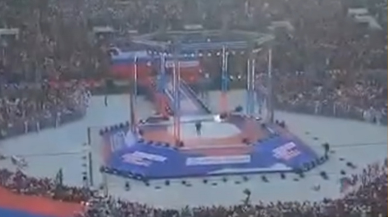 Вы помните, как Путин выступал в прошлом году в Лужниках? А там был вполне натуральный Путин, судя по многим признакам. Путин в прошлом году выступал в некоей "клетке" (были утверждения, что там были установлены прозрачные пуленепробиваемые стены, но это нельзя сказать наверняка), и там только до его многочисленной охраны было метров тридцать.