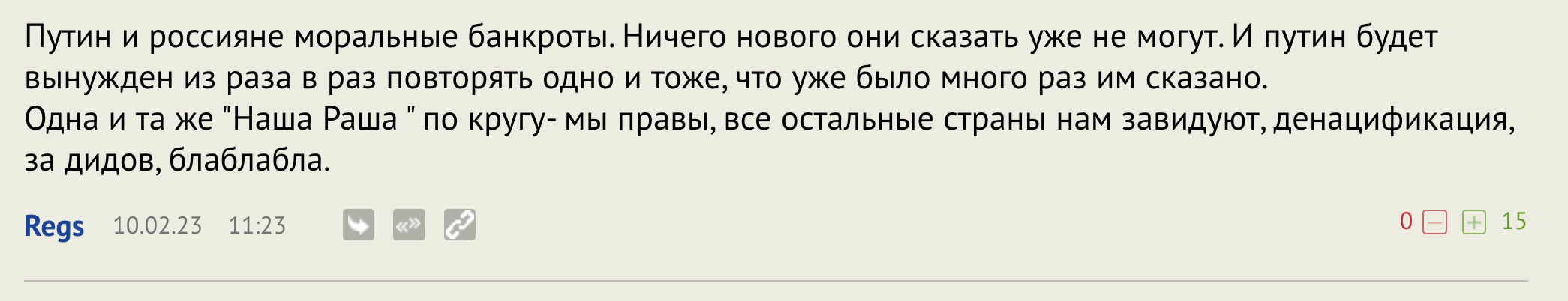 Ну как бы в его словах есть логика. Как теперь известно, все те предупреждения со стороны США о дате нападения и о победе в 72 часа были не результатом работы разведки, а просто пересказом того, что Путин сказал Бёрнсу. Т.е. чисто "по-пацански" предупредил, возражений особых не было, а потом, когда не получилось ни за 72 часа, ни за 72 дня, вдруг взяли и начали оружием снабжать. "Удар в спину".