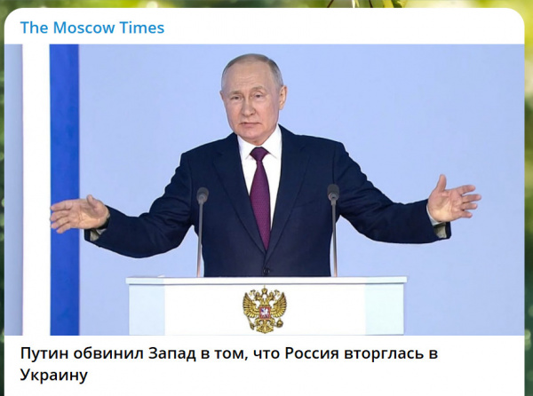 Путин обвинил Запад в том, что Россия вторглась в Украину