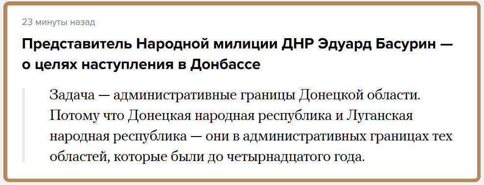 Ну понятно. Основная цель - захват и установление полного контроля над Донецкой и Луганской областями. (Сейчас они контролируются Россией не целиком, и после признания "независимости" ЛДНР как раз и стоял вопрос, в каких границах это все типа как признали. Теперь понятно, в каких.)