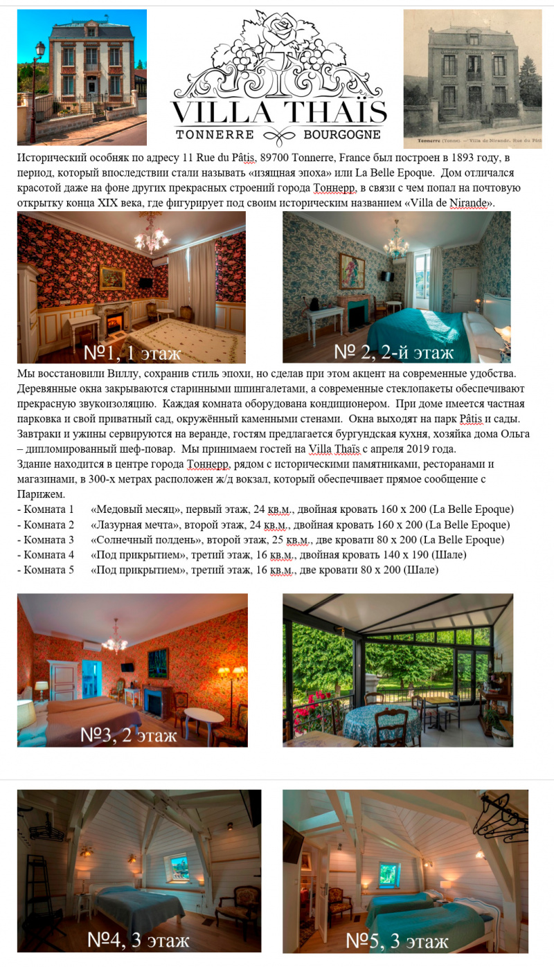 Координаты для связи, для различных уточнений, для бронирования - писать на почту Юрию villatonnerre@gmail.com, связываться через его Фейсбук или в Телеграм "Villa Thais Tonnerre" (@villathais). Если есть какие-то вопросы ко мне, то писать на мой обычный адрес alex@exler.ru.