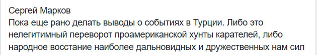 yurybel: Эрнест Макаренко @ErnestMakarenko 15 июл. То что все эти турецкие генералы проплачены США нет сомнений. Только мы пошли на встречу с Турцией и они решили этому помешать