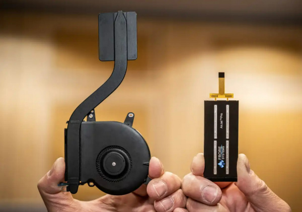 То есть это такое твердотельное решение для охлаждения процессоров, причем компания продемонстрировала два типа этих чипов - Air Jet Mini для тонких и легких ноутбуков и Air Jet Pro для больших и мощных ноутбуков.