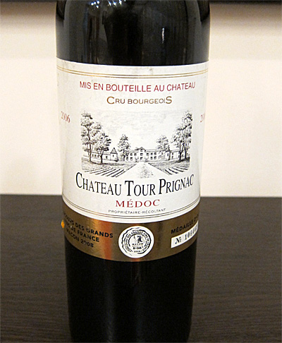 Потихоньку двигаюсь в сторону Франции. Ни черта во французском вине не разбираюсь, поэтому купился на волшебную надпись "Cru BourgeoiS Médoc" (она пока еще не подводила), да еще и за какие-то очень разумные деньги, порядка килорубля. Называется это Chateau Tour Prignac 2006. Вот этикеточка.