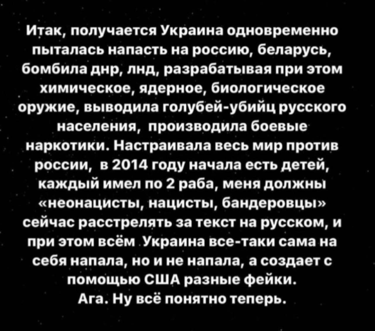 Войну развязала Украина, а мы проводим военную спецоперацию, как-то так, видимо.