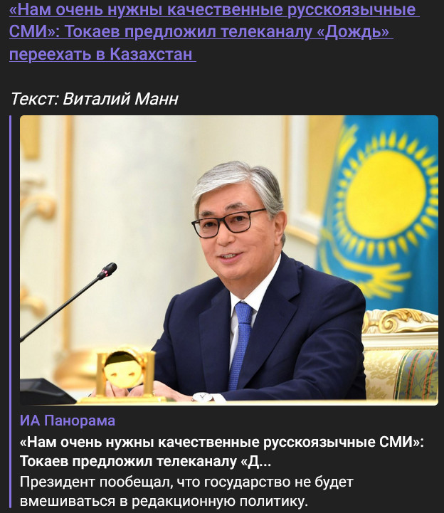 4. Глава NEPLP в интервью рассказал, что лицензию отозвали за нарушения, в частности, связанные с "отсутствием у руководства "Дождя" четкого понимания законов Латвии". А судебное решение на эту тему было? Если нет, то решение принято беззаконно (пусть и в соответствии с "действующими понятиями"), и у Кремля есть законный способ злорадствовать. Захотели, мол, какой-то там законности - ну, что, получили?