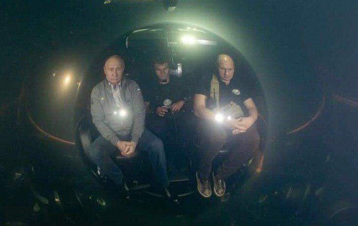 В батискафе. Сказочному вздумалось в Питере на дно погрузиться. В тот момент когда в Москве его опричники людей на мирной демонстрации избивали.