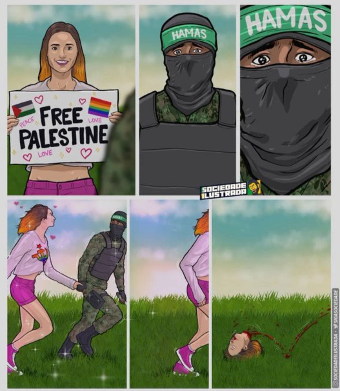 А еще выкладывали ролик, как где-то на футбольном матче в Иране кто-то развернул флаг Палестины, только другие начали скандировать «засунь себе этот флаг в ж… в тухес»… Оценить не мог, фарси не понимаю. Поверил описанию.