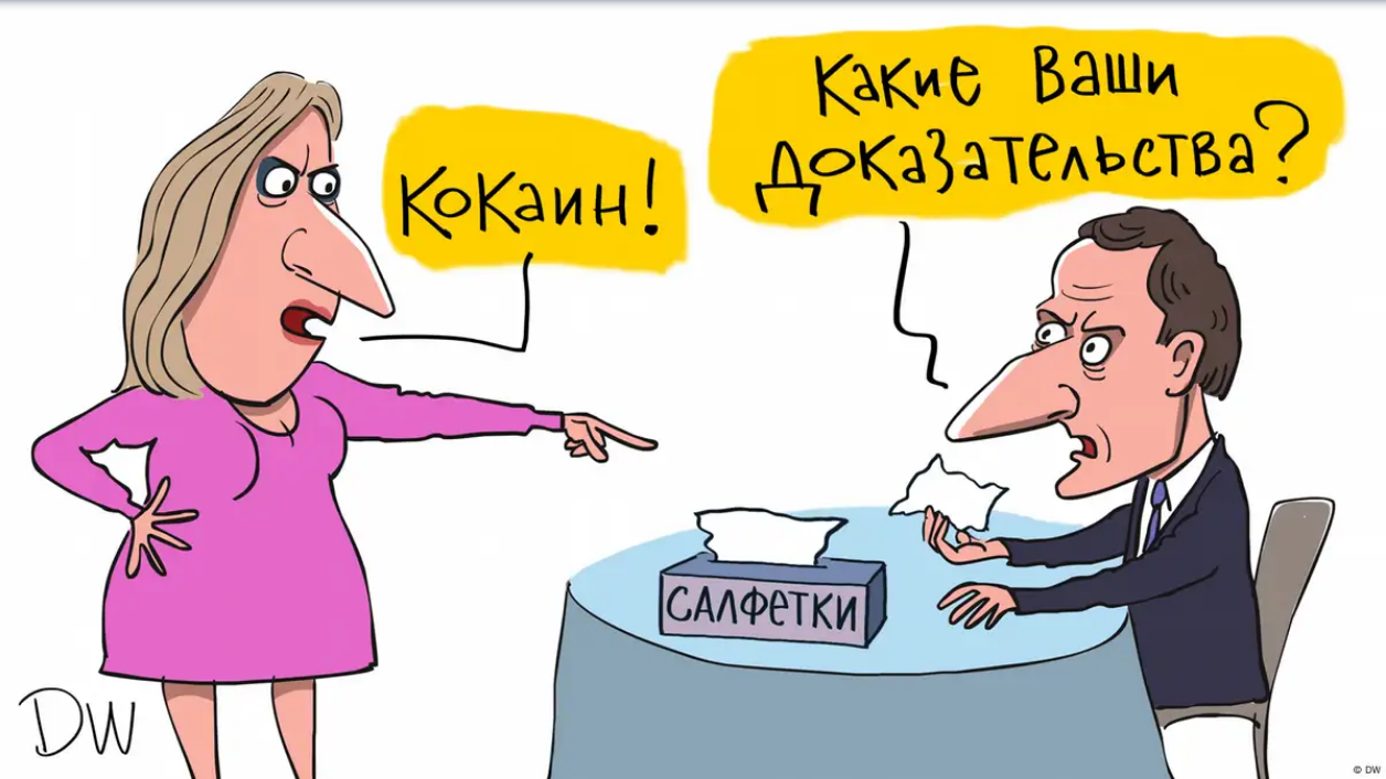 В издании Insider разбирают, каким образом у российских пропагандонов бумажный платок Макрона превратился в "пакетик кокаина", а шпажка для канапе Мерца превратилась в "ложечку для кокаина".