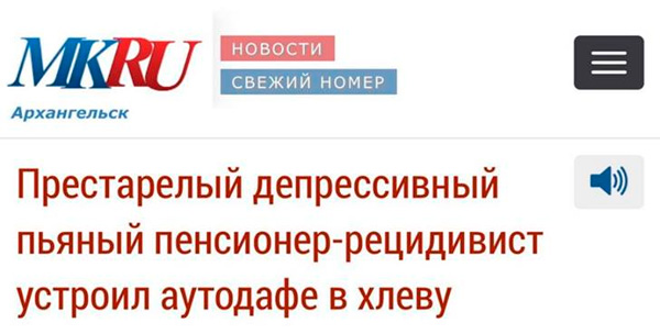 Нет, заголовок, конечно, хорош и сам по себе, но у меня есть вопрос. Аутодафе - это публичное сожжение еретиков по приговору католической инквизиции. Получил ли престарелый депрессивный и пьяный пенсионер-рецидивист приговор инквизиции? И так как спалил он сам себя, меня интересует мысль: был ли он еретиком или нет.