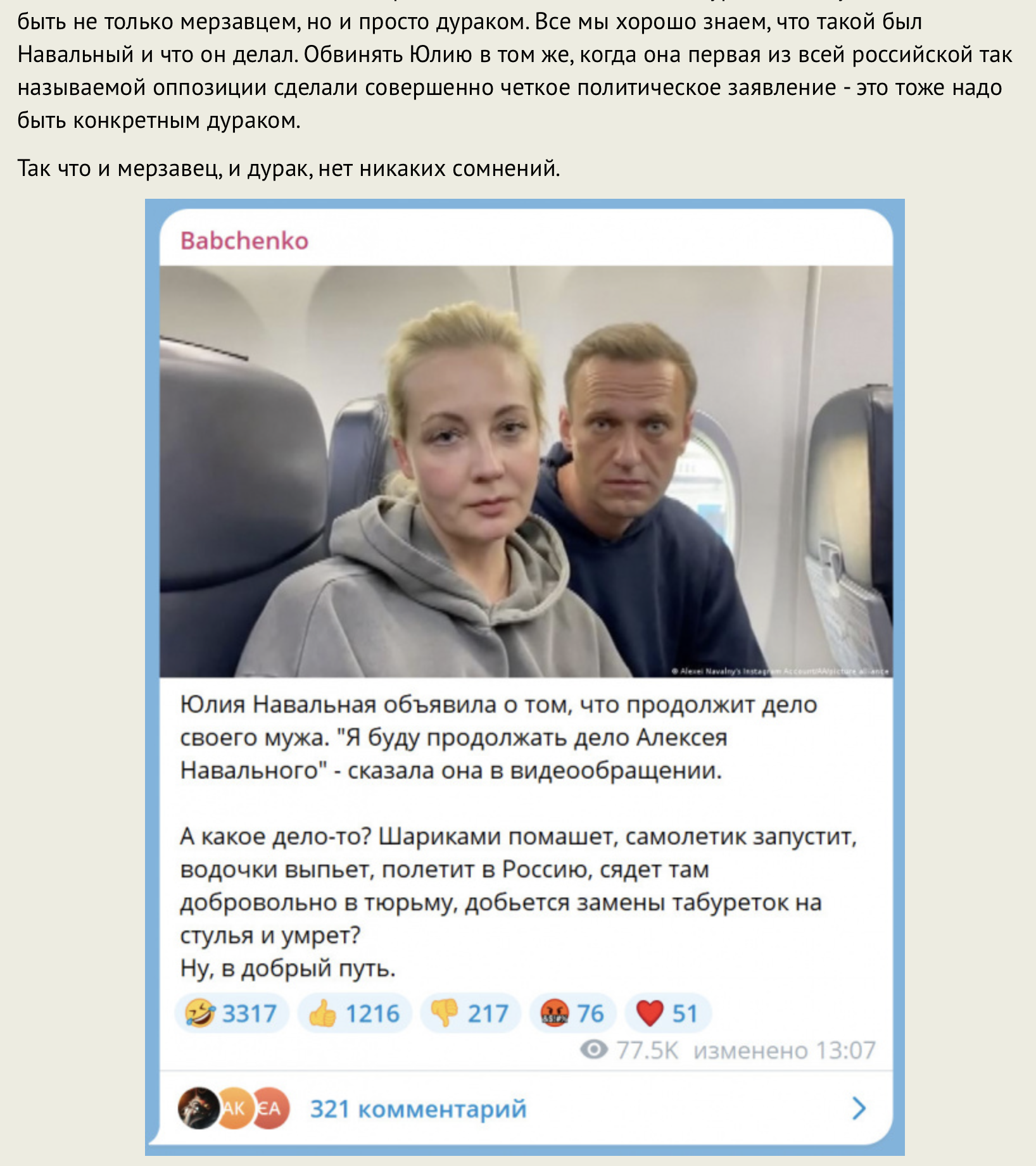 Честно говоря, когда мне вот это прислали, я подумал, что это фейк. Ан нет, не фейк, это действительно пост в ТГ "Команда Навального".