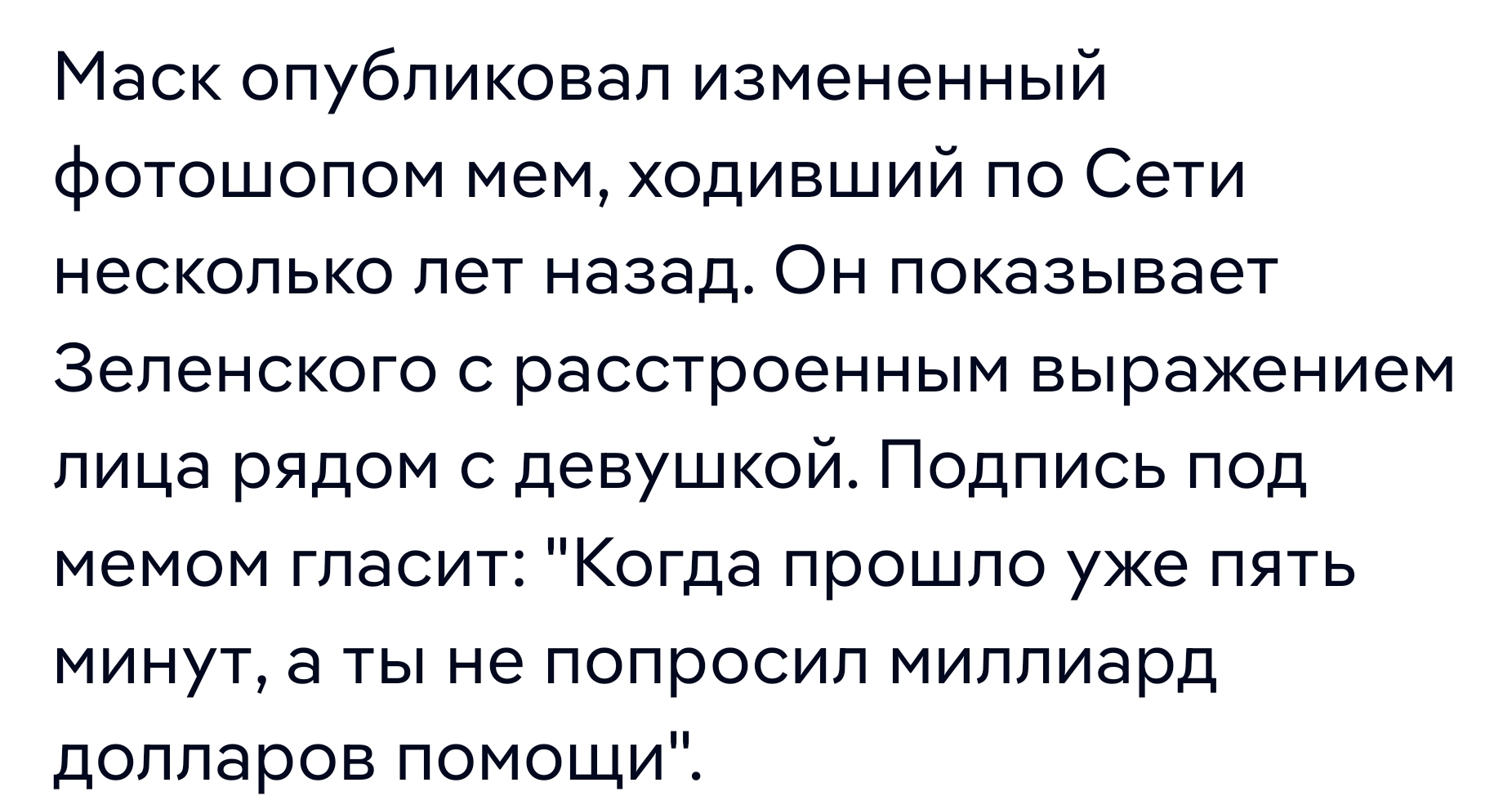 Ну или скорее понимает, но просто говорит то, что от него хотят услышать (кстати в этом смысле судя по интервью с Карлсоном Путин утратил связь с реальностью и уже не обладает таким навыком, иначе все было бы гораздо хуже).