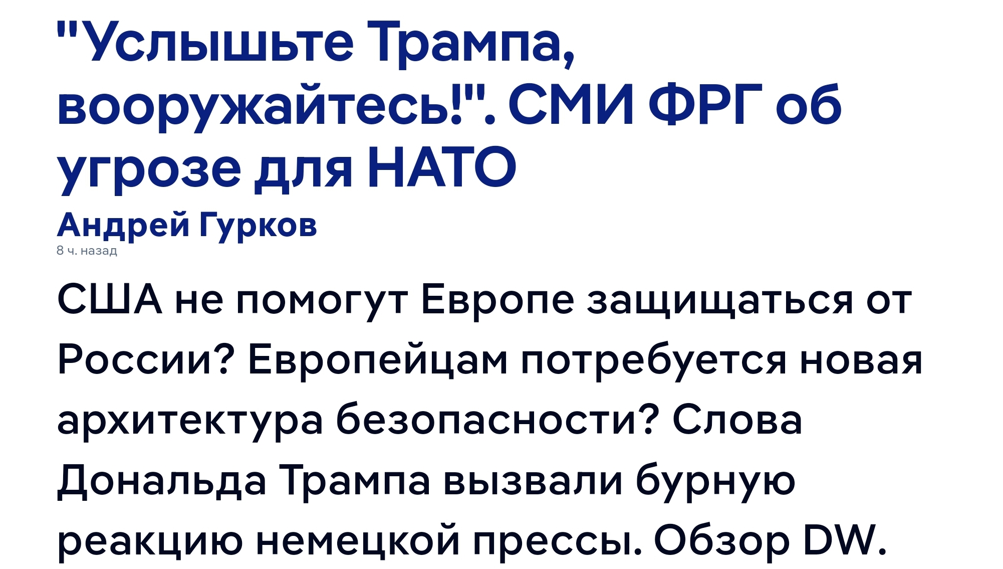 Не Трамп, не Буш-мл., и даже не Обама разоружили бундесвер так, что он даже собственно свою ФРГ защитить сейчас не в состояниии.