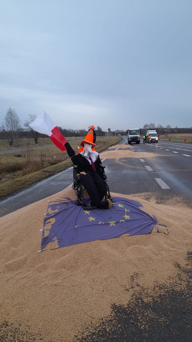 Польские протестующие, блокирующие границу, остановили три украинских грузовика и высыпали из них зерно.
